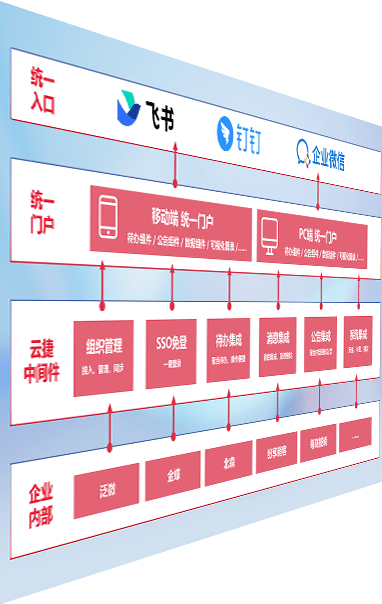 对协作平台提供支持服务,,,,支持企业应用与协作平台对接,,包含组织同步、、、、消息集成、、待办集成等。。。。支持目前主流的协作平台:钉钉、、、、企微和飞书。。
